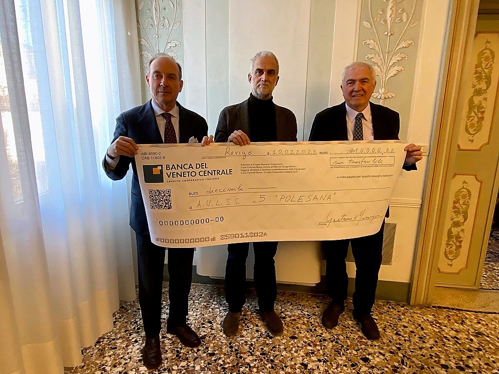 La cerimonia di consegna si è tenuta nei giorni scorsi a Palazzo Casalini, sede rodigina della banca, in presenza di Gaetano Marangoni e Lorenzo Liviero, rispettivamente presidente e vicepresidente vicario dell’istituto di credito cooperativo, e del Direttore dei Servizi Socio Sanitari dell’Azienda Ulss 5, il dr. Marcello Mazzo.