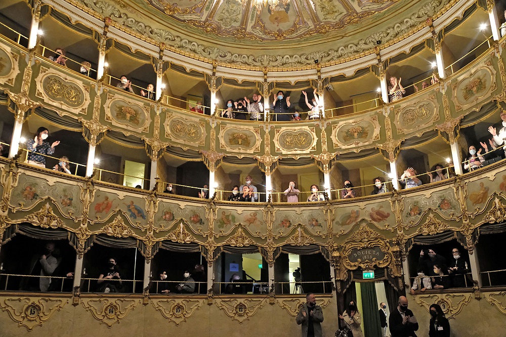 A salutare il ritorno del pubblico in sala, l’assessore alla Cultura Valeria Targa col direttore artistico della rassegna, Irene Lissandrin, per l’associazione organizzatrice ViviRovigo. Vuoi per la voglia di partecipare degli spettatori, vuoi per l’entusiasmo connaturato alla giovane età degli attori, lo scambio energetico emotivo inondava l’aria del teatro e rimbalzava dal proscenio fino ai palchi del terzo ordine.