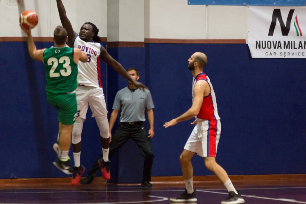 In realtà, i primi due quarti sono stati un po’ più equilibrati, anche se Rovigo ha comunque condotto dall’inizio gara. Coach Ventura inizia con Turri alla regia, affiancato dal giovane Motton (infortunatosi nel corso della gara a un occhio) nel ruolo di guardia, quindi con il cecchino Tiberio e gli interni Demartini e Gobbo.