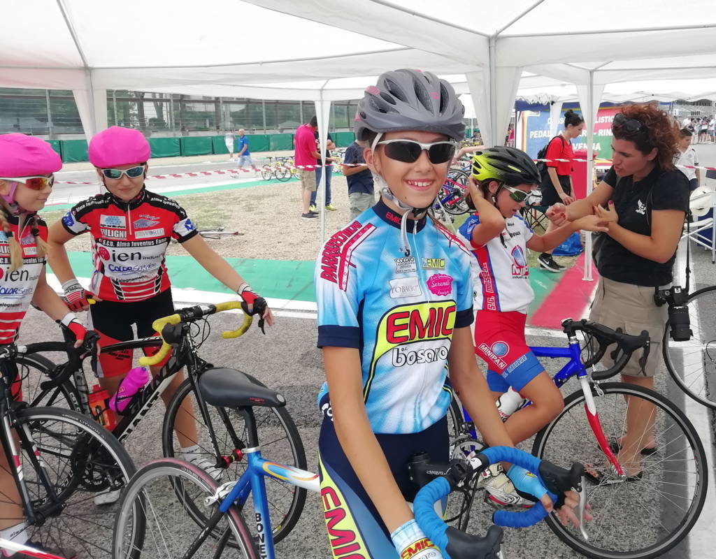 Stiamo parlando della “24° edizione del GP Fabbi Imola”, allestita dalla Ciclistica Santerno Fabbi Imola che sabato 27 e domenica 28 luglio ha accolto quasi 700 iscritti tra Giovanissimi (sabato mattina), Esordienti (domenica mattina) e Allievi (domenica pomeriggio), provenienti da 15 regioni sparse in tutta Italia. La location come anticipato è una di quelle da far battere il cuore: i Giovanissimi si sono misurati su un circuito di 1,3 chilometri interamente allestito nella zona traguardo e pit-lane, la stessa battuta dai pneumatici dei grandi campioni di Formula 1 e Moto Gp, giusto per dirne un paio.