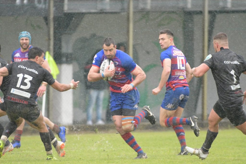 PADOVA – Sotto una pioggia torrenziale, calcio d’avvio dei rossoblù che subito hanno l’opportunità di mettere a segno i primi punti per un fallo in attacco dei padroni di casa ma dalla piazzola Mantelli non riesce a centrare i pali. I Bersaglieri però non demordono: al 4’ aprono il gioco dopo una rimessa laterale nei pressi dei 22 avversari e con una splendida azione vanno a schiacciare oltre la linea con Brugnara. Prima della trasformazione però l’arbitro si consulta con il TMO e annulla la meta precedentemente assegnata. Sullo 0-0 si riparte con mischia ad introduzione rossoblù sui 5 metri e dopo vari tentativi di incursione e un’altra mischia, i rodigini riesco a sfondare la difesa avversaria e ad andare in meta all’11’ con capitan Ferro. La trasformazione di Mantelli va a buon fine: 0-7.