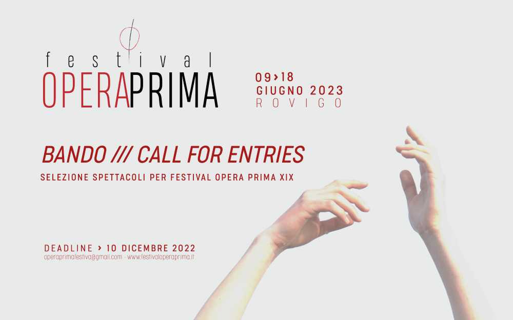La nuova edizione del festival, Opera Prima XIX, sarà quindi realizzata a Rovigo dal 9 al 18 giugno e, come gli scorsi anni, anche per questa nuova edizione la direzione artistica ha deciso di indire un bando per raccogliere proposte artistiche a livello nazionale ed internazionale.