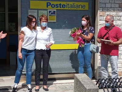 A prendere il posto della signora Marangoni è stata chiamata la giovane impiegata Melissa Bevilacqua, di Lendinara. 31 anni, da due in Poste Italiane, laureata in Giurisprudenza con il titolo di avvocato, la nuova direttrice è anche mamma di un bambino di tre anni. Hanno partecipato all’iniziativa il Direttore degli uffici postali della provincia di Rovigo Erasmo Scatigna, la Giunta del Comune di Gaiba, e alcuni cittadini nel rispetto delle disposizioni anti COVID.