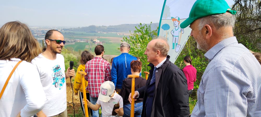 “La Banca che piantava gli alberi” Il primo progetto sostenuto dall’istituto di credito all’interno del progetto “Il Bosco BVC”, è stato il “Bosco delle vigne”, un polmone verde ricco di biodiversità da preservare, nei Colli Berici, ad Arcugnano (VI), di proprietà del dottor agronomo Berardo Da Schio, giovane socio della Banca. All’interno dell’evento organizzato dallo stesso Da Schio ed Etifor, società spin-off dell’Università degli Studi di Padova, che ha realizzato la piattaforma WOWnature (un’iniziativa che aiuta cittadini, enti e aziende a far crescere nuove foreste e proteggere quelle esistenti, nel rispetto dei più alti standard di gestione forestale), sabato 1 aprile 2023 la Banca – partner della giornata – ha incontrato una cinquantina di persone aderenti all’iniziativa per raggiungere il punto di impianto degli alberi adottati.