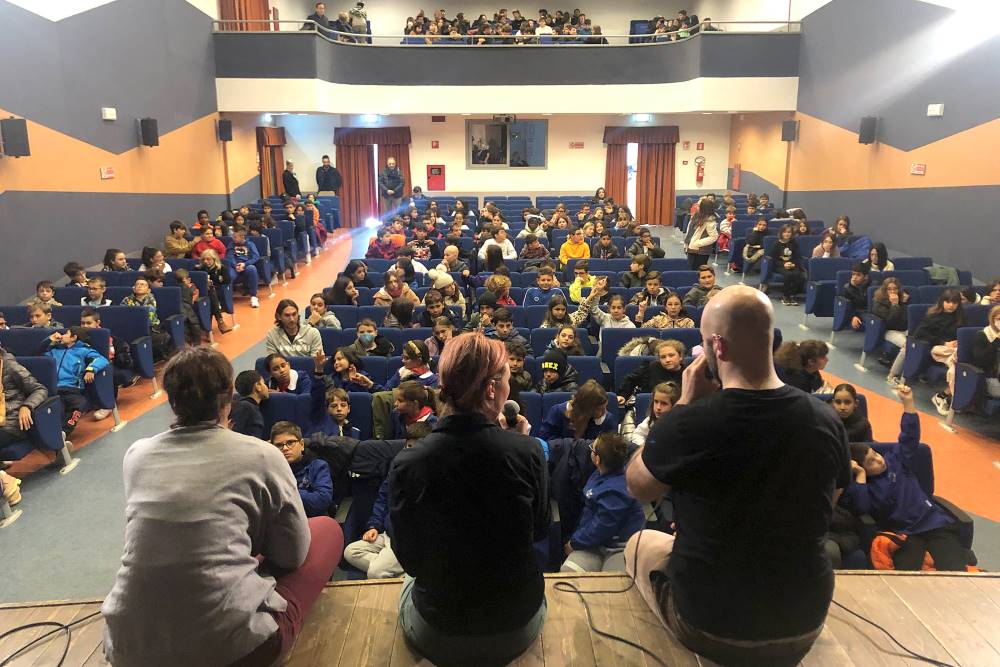 In Sala Europa sono convenute circa 280 persone: le dieci classi della scuola media Elia Maestri e le tre quinte delle primarie dell’Ic Taglio di Po, accompagnate dagli insegnanti e dal preside Massimiliano Beltrame. Ad introdurre lo spettacolo, il sindaco Laila Marangoni con l’assessore Alessandro Marangon che hanno fatto considerazioni sulla Festa degli alberi e ringraziato l’azienda Agricole Forte per aver sostenuto l’iniziativa e presentato la propria attività ai ragazzi. La drammatizzazione dei Pantakin parte dal racconto degli effetti visibili dei cambiamenti climatici: la cosiddetta tempesta Vaia, un vento a forza di uragano (150 chilometri orari con raffiche di 217), che si è abbattuta sull’arco alpino veneto trentino nel 2018, radendo al suolo oltre 42 mila ettari di foreste e boschi. Poi, i tre attori sul palco (Irene Silvestri, Matteo Campagnol e Agata Garbuio; i primi due curano alcuni dei laboratori teatrali per bambini e ragazzi nel progetto “Il teatro siete Voi 2022”) con l’uso delle maschere, nel solco della tradizione della Commedia dell’arte di cui Pantakin è promotrice, hanno interpretato la stupefacente storia del pastore Elzéard Bouffier, che piantando cento ghiande al giorno per una trentina d’anni, riuscì a riforestare di querce una vallata deserta e siccitosa alle pendici delle Alpi provenzali. Gli alberi riportarono le zone umide ed i ruscelli. Non solo querce, ma anche faggi e betulle ricoprirono undici chilometri quadrati di foresta, tanto da destare l’interesse dello Stato, che inviò una delegazione governativa. Si ripopolarono i villaggi nei dintorni, nacquero nuove fattorie e riprese la coltivazione dei campi. Un albero può davvero cambiare il mondo: una lezione di vita indimenticabile. Infatti, nel post spettacolo, gli studenti hanno fatto mezzora di domande e di commenti sia sulla drammatizzazione vista, che sul tema ecologista in generale e, in specie, sul rapporto con gli alberi, sull’abbattimento selettivo e sull’uso del legname.