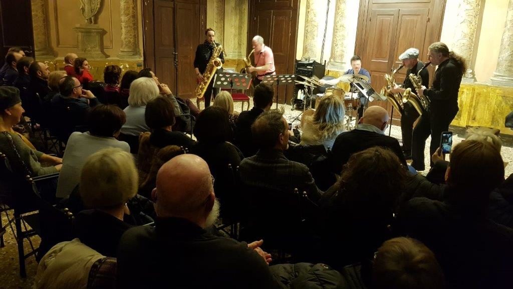 Le aspettative erano molte e i biglietti andati a ruba per questo atteso appuntamento dal titolo “Across The Bariton” che ha visto protagonisti applauditissimi Javier Girotto, Florian Bramböck, Helga Plankensteiner e Giorgio Beberi al sax baritono e il batterista Mauro Beggio, artisti già apprezzati al Ridotto in altre occasioni e con altre formazioni che per questa serata hanno offerto “il caos chiassoso di una baraonda e una vigorosa onda musicale“.