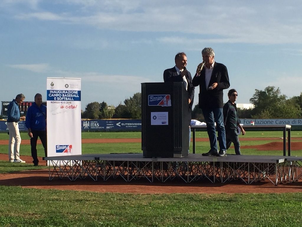 Ai ringraziamenti si è unito anche Lucio Taschin. «É una inaugurazione un po’ strada perché in realtà il Baseball Softball Club Rovigo è in questa struttura dal 2013. Questo è un luogo per società sportive che vogliono mettersi in gioco – ha sottolineato – É un campo che può ospitare partite internazionale, almeno di livello giovanile. Abbiamo realizzato spogliatoi a norma e capienti, grazie ai pannelli solari i consumi sono pari a zero. C’è un tabellone segnapunti completamente nuovo. Qui giocano atleti dai quattro anni ai massimi livelli. In questo campo abbiamo ospitato campioni come Filippo Crepaldi che oggi è qui con noi a festeggiare. Ogni anno ospitiamo qualche decina di ragazzi americani. Qui si fa turismo, cultura ed economia. Qui sono state giocate finali scudetto, campionati di altissimo livello come l’Italia Softball League e la Serie A. Ma la cosa più importante è che in questo impianto tante famiglie ci danno fiducia portandoci i loro figli e a loro va il nostro grazie più grande».