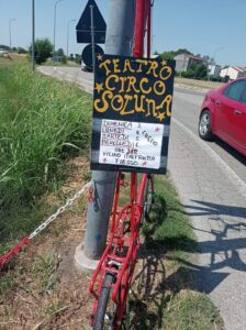 La carovana del circo “Soluna”, trainata da cavalli, sembra catapultata direttamente dal far west. Utilizzando un vecchio carro a botte e una roulotte di legno, si sposta a ritmi lenti come la filosofia dell’intera famiglia. Gli artisti seguono a piedi o in bicicletta.