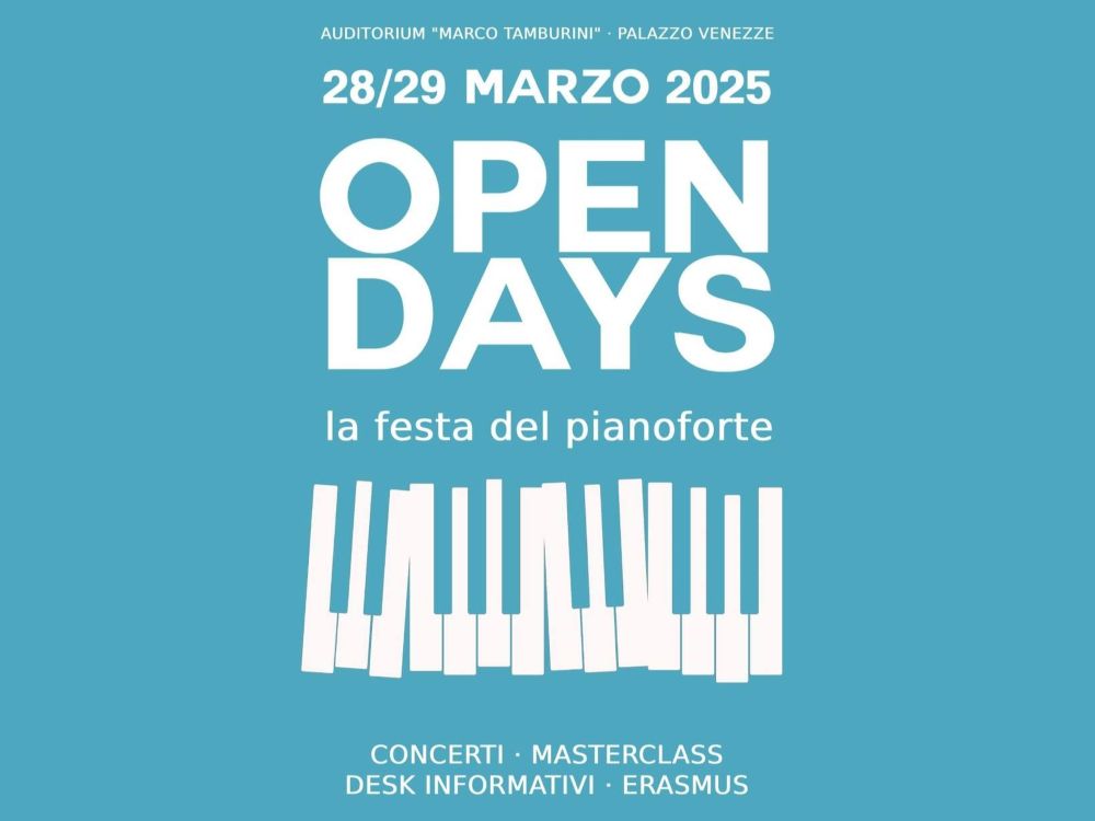 Un’opportunità preziosa per scoprire le proposte didattiche del Conservatorio, conoscere i docenti e vivere in modo diretto il mondo del pianoforte in tutte le sue sfaccettature. Un evento che unisce orientamento, cultura e passione musicale in due giornate ricche di appuntamenti e concerti.