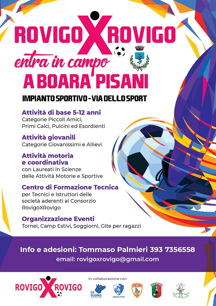 Oltre all’attività sportiva dedicata ai bambini e ragazzi del territorio l’impianto sportivo di Boara Pisani sarà un Centro di Formazione Tecnica.  «É evidente – aggiunge Cittante – che porteremo l’esperienza e la professionalità di dirigenti e tecnici di società storiche del capoluogo come Duomo, Granzette, San Bortolo e Grandi Fiumi che trovano la loro sintesi in RovigoxRovigo, cercando la collaborazione con le altre società presenti nel territorio basso padovano. É nostra intenzione, infatti, programmare incontri per condividere un progetto di crescita e cooperazione e mai di sfida».