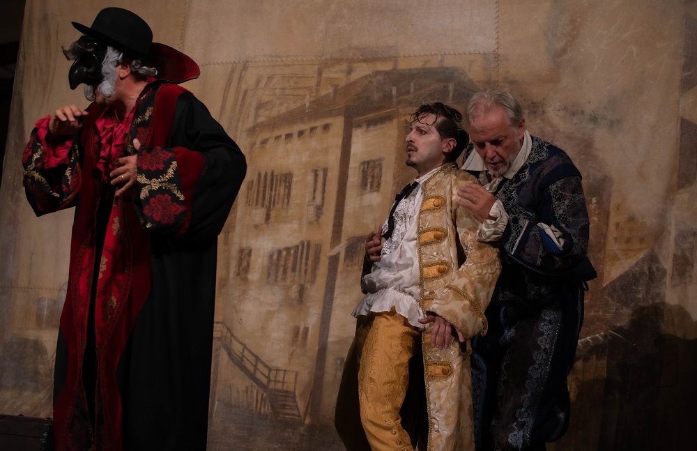William Shakespeare è uno dei miti indiscussi del teatro, nel corso della sua brillante carriera ha sfornato 36 drammi, tradotti in tutte le lingue del mondo. Ebbene, se il Bardo di Stratford Upon Avon ha ambientato ben cinque delle sue opere nel Veneto del Cinquecento, quattro delle quali sono da considerare capolavori indiscussi, alla Compagnia “Teatroimmagine” è sembrato del tutto naturale offrire al pubblico una rilettura de Il Mercante di Venezia, un classico tra i classici, opera teatrale scritta probabilmente dallo scrittore inglese tra il 1596 e il 1598, raccontandone le vicende con le voci dei comici della Commedia dell’Arte, una forma di spettacolo nata in Italia proprio nel XVI secolo, con rappresentazioni basate su canovacci e non copioni definiti.