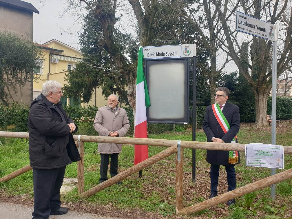 ROVIGO – Il nuovo parco in Tassina ora si chiama David Sassoli. La cerimonia di intitolazione, a distanza di un anno dalla scomparsa del presidente del Parlamento Europeo, si è tenuta venerdì 13 gennaio alla presenza del sindaco Edoardo Gaffeo, delle autorità cittadine, del presidente del Forum dei cittadini Federico Saccardin, che ha promosso l’iniziativa, sostenuta dal Comune di Rovigo e dell’europarlamentare Achille Variati che ha letto la lettera della presidente del Parlamento Europeo e tenuto un momento di commemorazione.