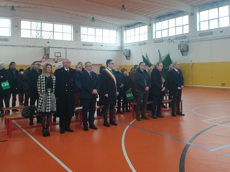 La cerimonia ha preso il via con lo svelamento della targa, da parte del sindaco e del presidente del Forum dei cittadini, per procedere poi all’interno della palestra Barbujani.