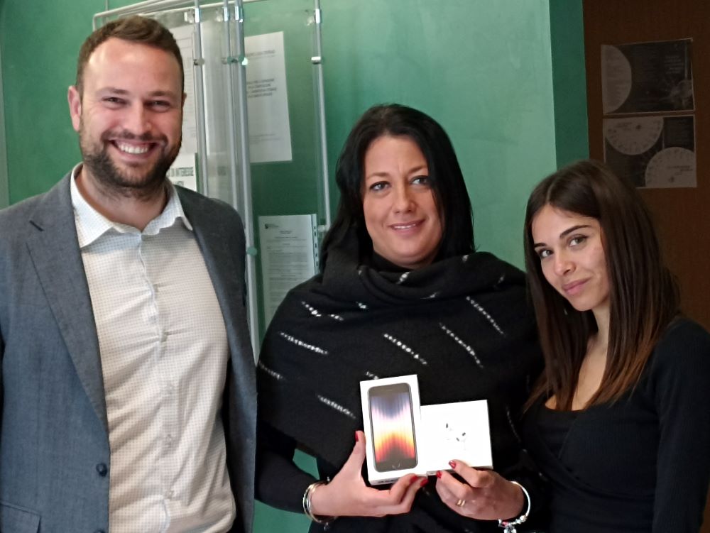 La fortuna ha premiato anche Gloria Stragliotto di Cittadella (PD), che si è aggiudicata un iPhone SE 128GB con Airpods 3rd gen. La signora Gloria, anch’essa intestataria di un piano di accumulo, ha ritirato il premio presso la filiale di Tezze sul Brenta (VI).