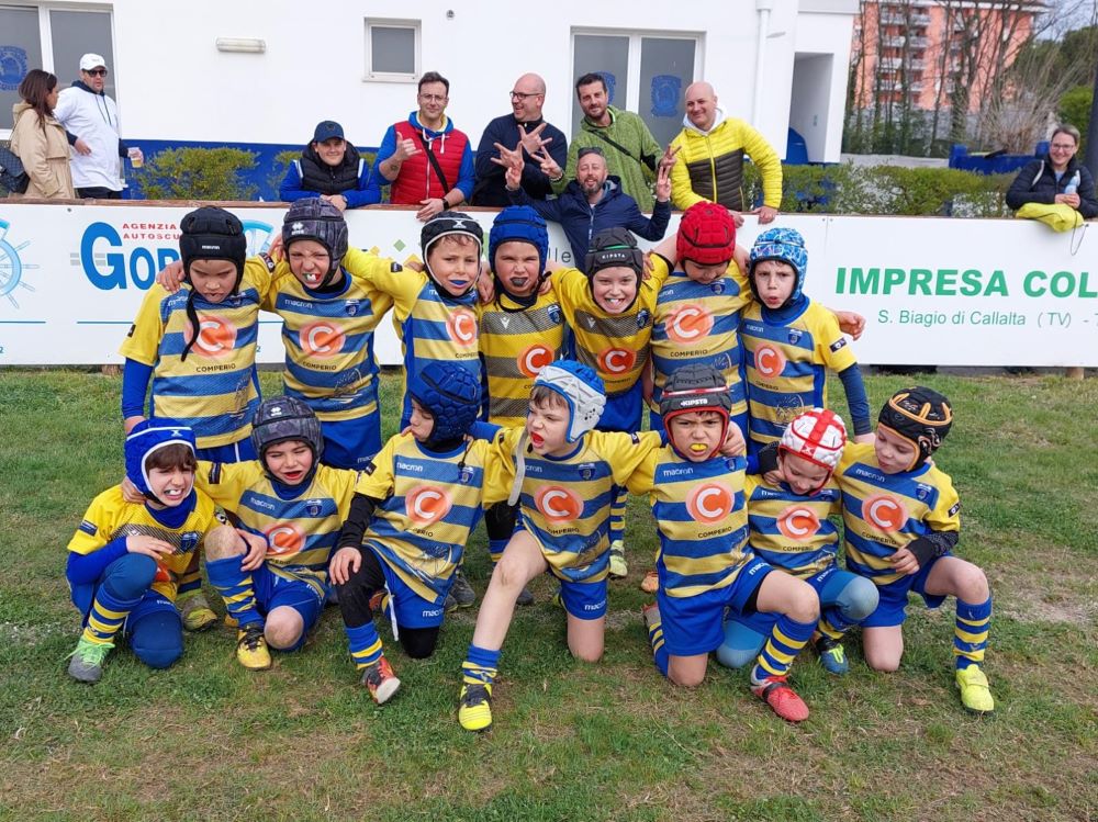 L’Under 7 degli educatori Angela Casali, Ettore Boarato, Daniel Aggio e Giorgia Menegatti si è classificata al settimo e all’ottavo posto dopo avere dato al mattino del filo da torcere alle formazioni maggiormente quotate come il Benetton Treviso. Hanno giocato Bergamasco Diego, Calorini R. D., Dardani G., Foglia J., Ghirello A., Graziano D., Marega F., Bergamasco Davide, Bianchini I., Boarato T., Corra’ L., Pizzeghello L., Scanavacca F. e Segradin G..