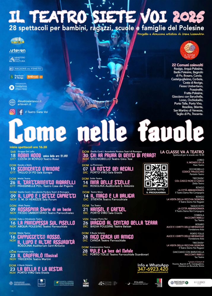 “Il teatro siete voi 2025” è ideato da Irene Lissandrin per ViviRovigo aps con il sostegno di Mic, Regione Veneto, Circuito Regionale Arteven, Provincia di Rovigo con RetEventi, Fondazione Cariparo e Fondazione Banca del Monte di Rovigo, e con la collaborazione di numerosi Comuni polesani. Tra i partner anche Bvr Banca Veneto Centrale, Fita, Aics, Notorious Cinemas e diverse realtà imprenditoriali del territorio.