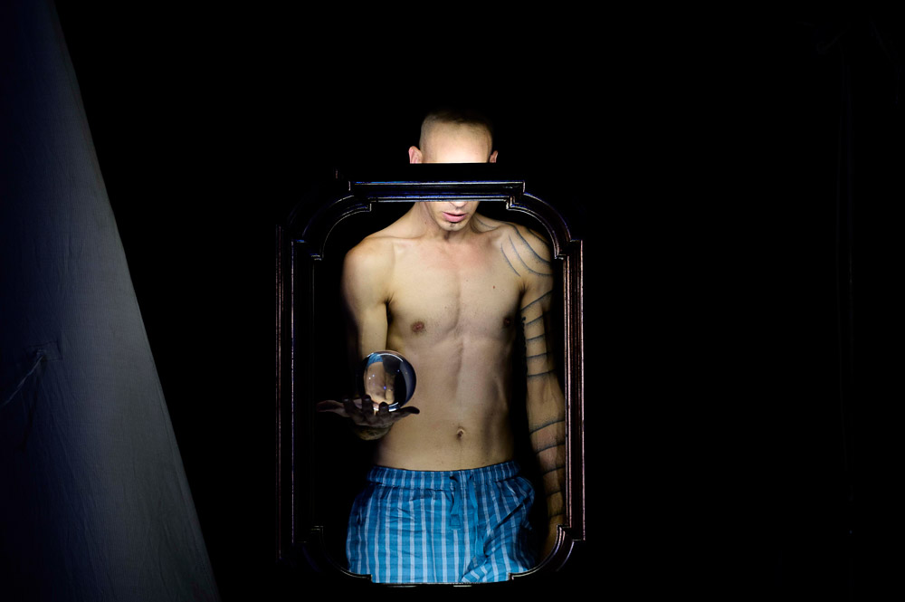 Lo spettacolo è cucito intorno alle mille suggestioni che sa creare il giocoliere e performer Giacomo Roja: una specie di fachiro magico, che sembra manipolare la luce e il buio. In questa nuova versione c’è l’inserimento di altri elementi artistici: la recitazione dell’attore e regista Emanuele Pasqualini, formato alla Commedia dell’arte, e la poesia della danzatrice e attrice Carla Marazzato, che fa anche da co-regista.