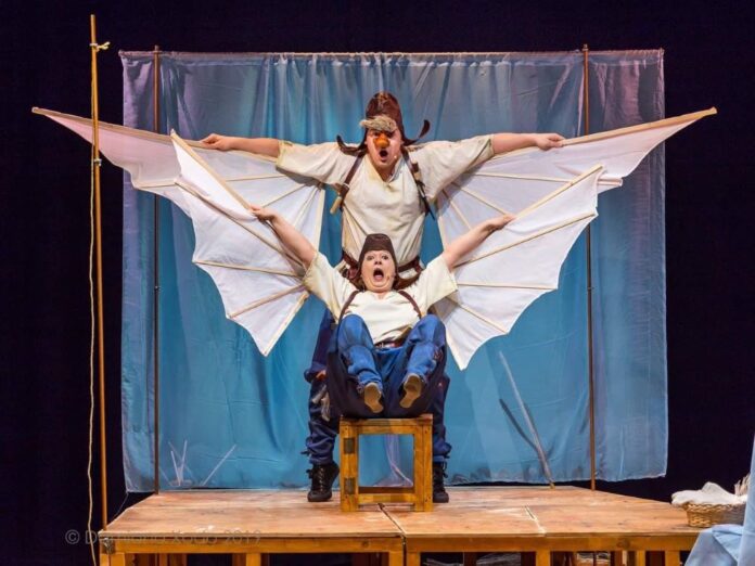 Lo spettacolo rappresentato è “Il sogno del giovane Leonardo da Vinci”, una commedia musicale in maschera, prodotta dalla Barabao teatro – A mouvement theatre company di Padova, con Ivan Di Noia e Romina Ranzato, che hanno anche scritto i testi originali; musiche di Andrea Mazzacavallo; scenografia, costumi e maschere di Roberta Bianchini; falegnameria di Francesco Di Noia. Regia di Cristina Ranzato.