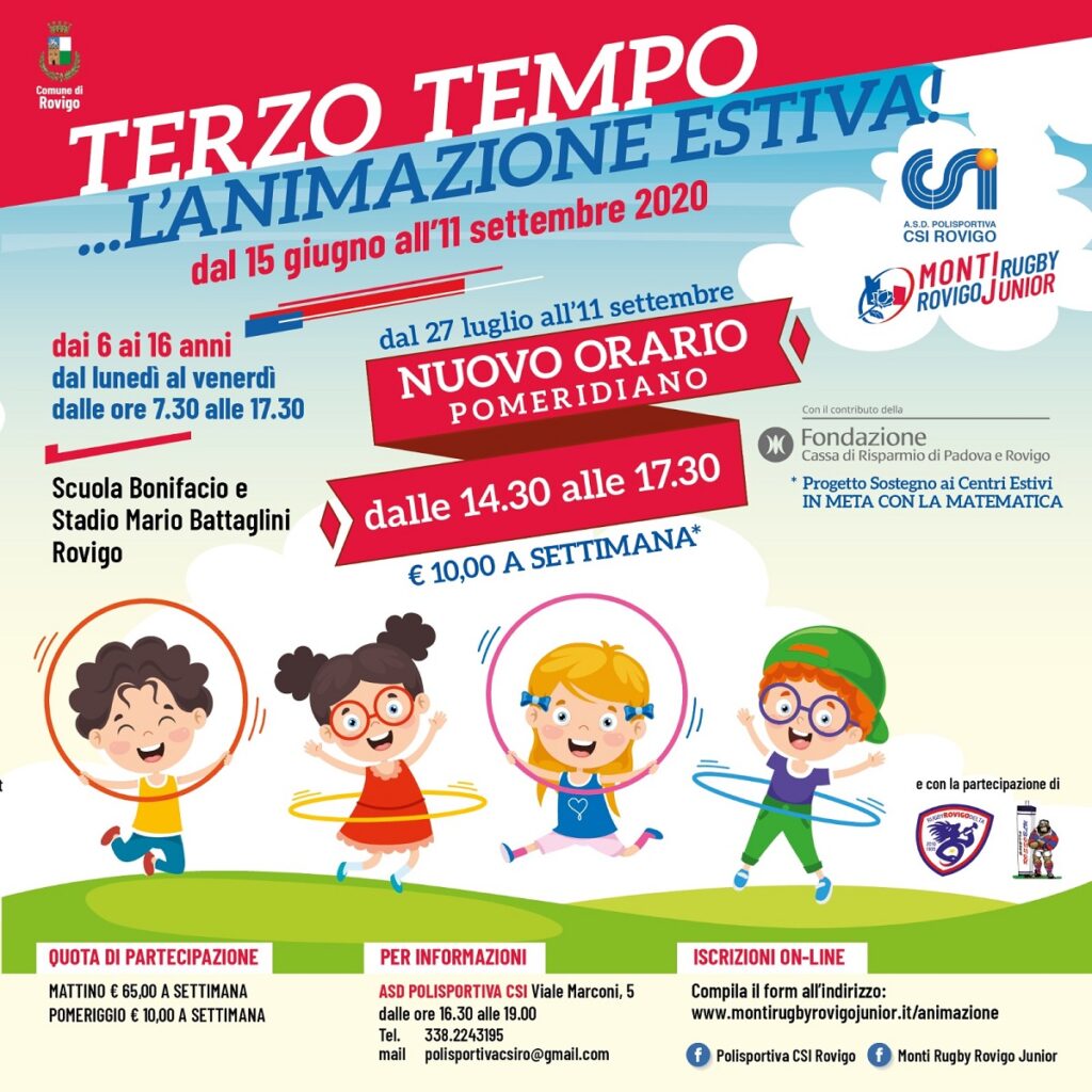ROVIGO – Quando l’attività didattica incontra lo sport, nasce “In meta con la matematica”. È l’iniziativa organizzata dalla Polisportiva CSI Rovigo in collaborazione con Monti Rugby Rovigo Junior, con il sostegno della Fondazione Cariparo, condivisa dal Comune di Rovigo.