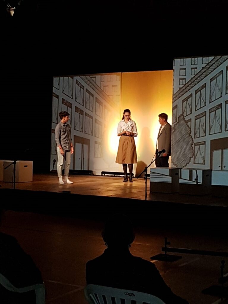 Regia di Roberto Pinato; scenografie di Enzo Barion. Gli studenti coinvolti sono Maria Elena Andreoli, Benedetta Barone, Mattew Benvegnù, Melissa Callegari, Lorenzo Carozzini, Gabriel Da Silva Lima, Cristian Danese, Anna Frezzato, Jamila Karim, Gian Maria Milani, Giorgia Morgon, Luca Veghin. I ragazzi del Gic sono invece Lara Braggion, Giorgio Braiato, Matteo Claudio, Stefania Csornai, Tedi Cyrbja, Matilde Dainese, Chiara Fonti, Malika Karim, Annalaura Lanfredi, Matteo Muriani, Matteo Paltanin, Anna Rudian, Mattia Sandri, Martina e Sara Schiesaro, Chiara Sichirollo, Tommaso Veronese, Jacopo Zambello.