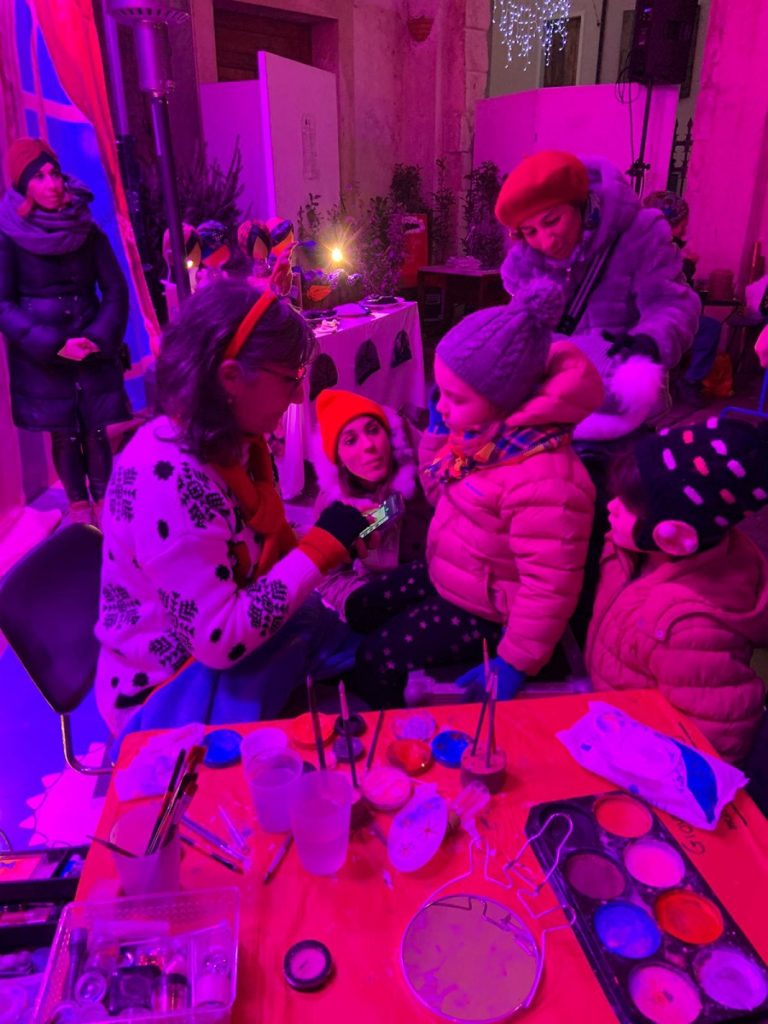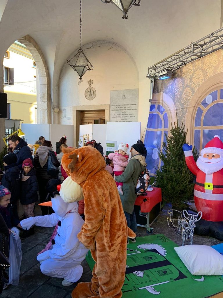 Per l’intero fine settimana, Elsa la principessa del regno di ghiaccio, il suo fedele amico Olaf e, con loro, la renna Rudolf, hanno accolto i tanti accorsi a immergersi nelle atmosfere del Natale. Decine e decine di bimbi dai 2 ai 13 anni, accompagnati da mamma e papà o dai nonni hanno letteralmente preso d’assalto l’androne del palazzo e si sono alternati ai laboratori.