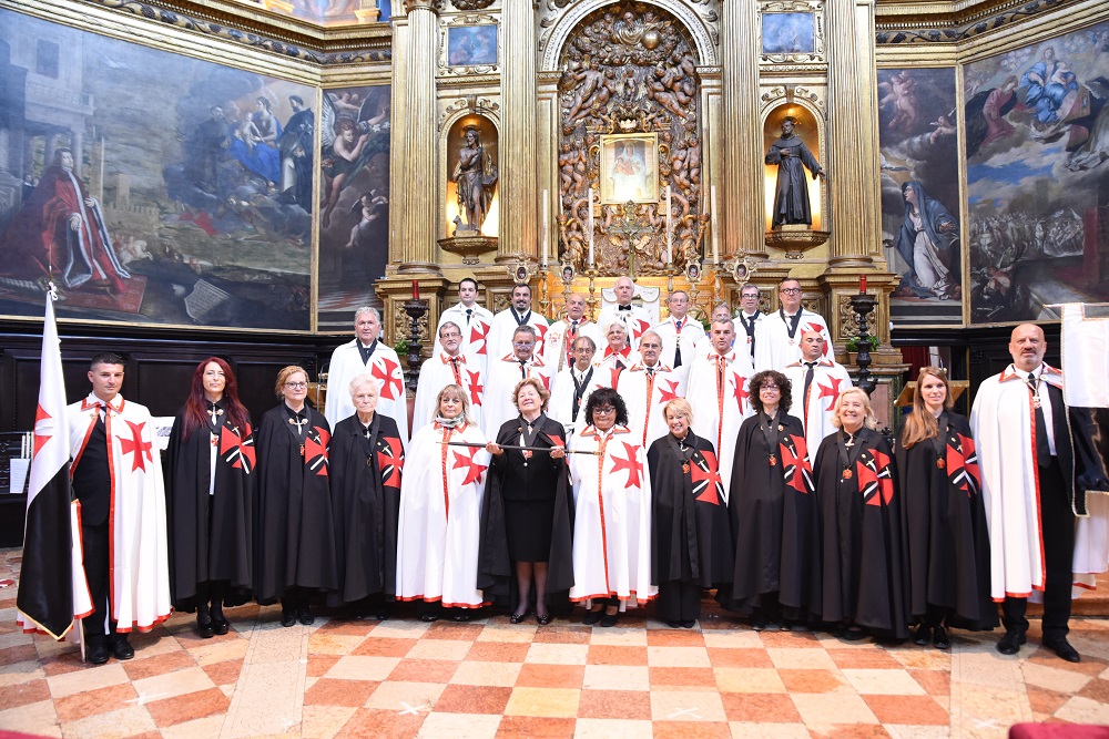 Alle ore 11.00, don Gianluca Colato, rettore della Comunità della Madonna di Lourdes di Cerea, ha ufficiato la Santa Messa, impreziosita dai canti gregoriani del Coro della Maestra Arduini. È stata una fucina di forti emozioni, momenti commoventi, soprattutto nella parte della recita del Memorare di San Bernardo di Chiaravalle da parte della Dama di Commenda Ida Maria Stoppa. A seguire, il Priore delle Tre Venezie Raffaele Mautone, coadiuvato dal Siniscalco Luca Stefano Callegaro e da Don Gianluca Colato, secondo un antico rituale, ha proceduto all’investitura di sei Dame e cinque Cavalieri.