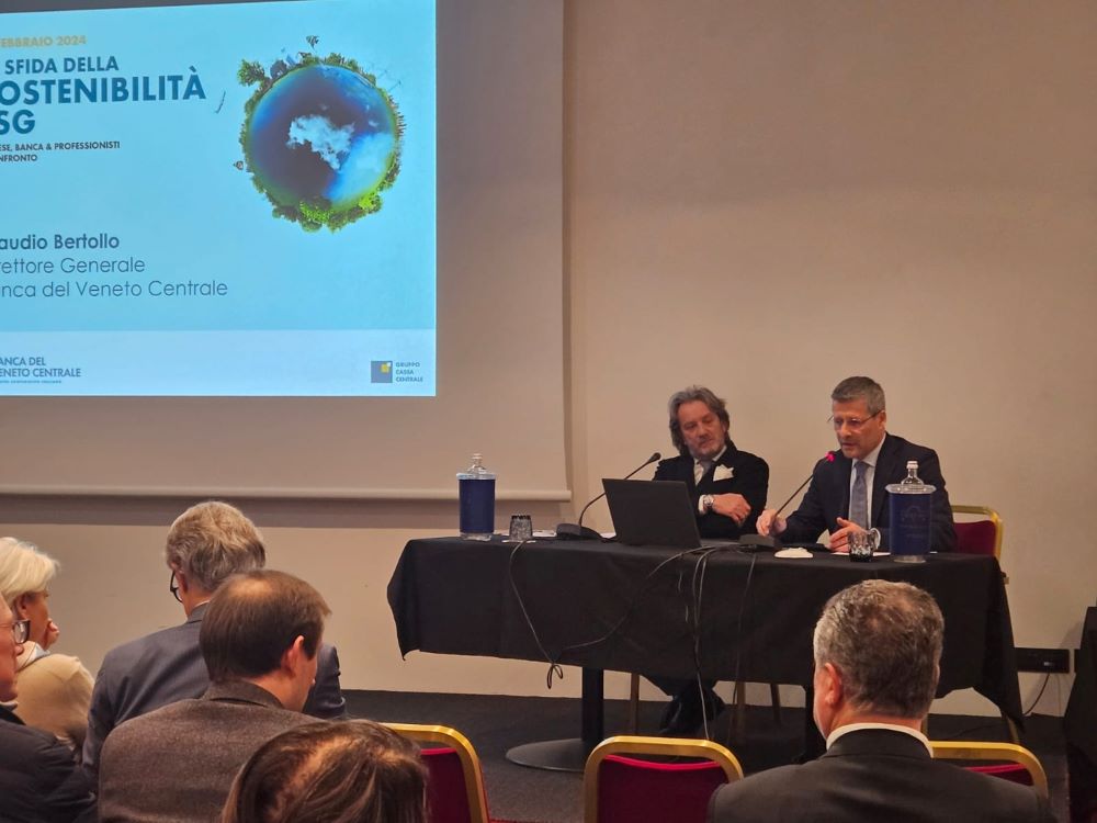 Al consesso hanno partecipato Gaetano Marangoni e Claudio Bertollo, rispettivamente presidente e direttore generale dell’istituto di credito, assieme a Margherita Monti presidente dell’ODCEC di Vicenza e a Dario Corradin, consigliere e amministratore indipendente di Banca del Veneto Centrale. Sono stati, inoltre: l’Ing. Carlo Paris (esperto di Tematiche ESG e impatti sulle imprese), la Dr.ssa Roberta Famà (chief ESG e rapporti istituzionali gruppo Cassa Centrale Banca Spa), il Prof. Alessandro Lai (professore ordinario di economia aziendale all’Università di Verona) e il Dr. Carlo Santamaria Amato (notaio in Bassano del Grappa), a raccontare come la transizione green sia molto più di una veste di marketing, illustrando quali sono le sfide che attendono le imprese del territorio e le opportunità e i rischi presentati dal mercato in questa fase.