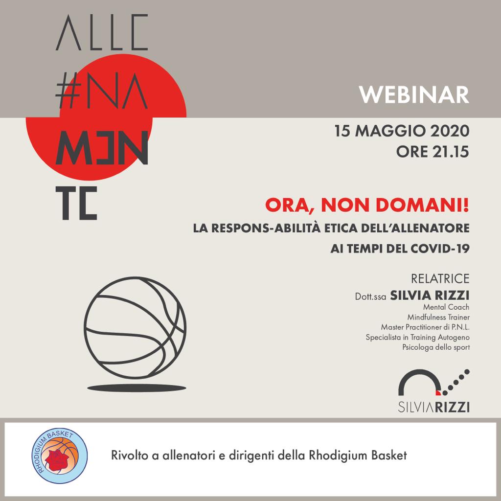 Inizieremo venerdì 15 maggio alle ore 21.15 con la dott.ssa Silvia Rizzi psicologa dello sport con il webinar “Ora, non domani! La respons-abilità etica dell’allenatore ai tempi del Covid-19”.