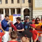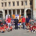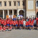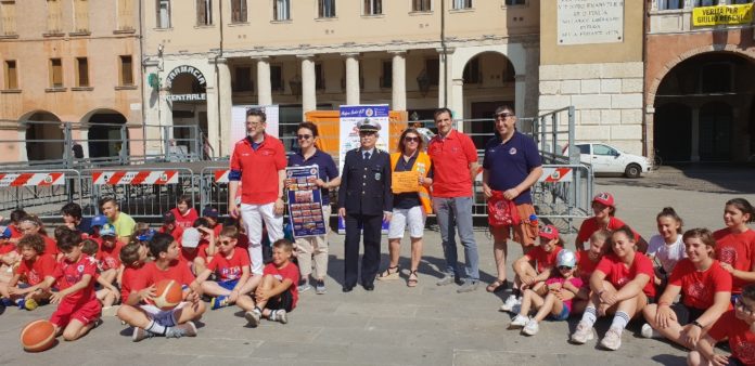 ROVIGO – Momento di festa e sport in piazza Vittorio Emanuele II con la Rhodigium Basket. La società ha voluto festeggiare il nono anno di attività con un piccolo evento organizzato nella mattinata di martedì 18 giugno nel cuore cittadino. All’iniziativa ha partecipato anche il sindaco Edoardo Gaffeo, accompagnato dal vice Roberto Tovo.
