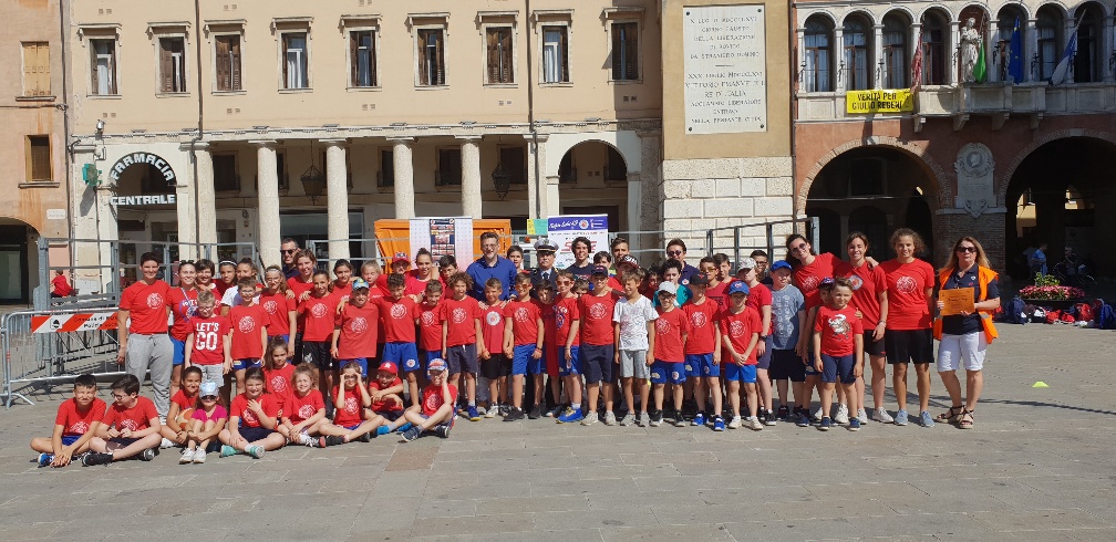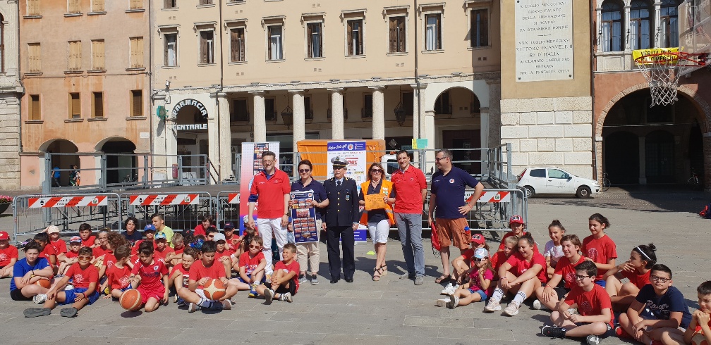 Fondata il 18 giugno del 2010 con l’intento di far giocare un gruppetto di dieci bambine, attualmente la Rhodigium basket vanta più di 250 atleti tra Minibasket, Giovanili, Senior e 20 dirigenti, con oltre 12 campionati disputati nell’anno sportivo 2018/2019. In piazza erano presenti i bambini dell’animazione estiva di casa denominata “Time Out”, accompagnati in sicurezza, grazie alla convenzione con l’associazione Pedibus.
