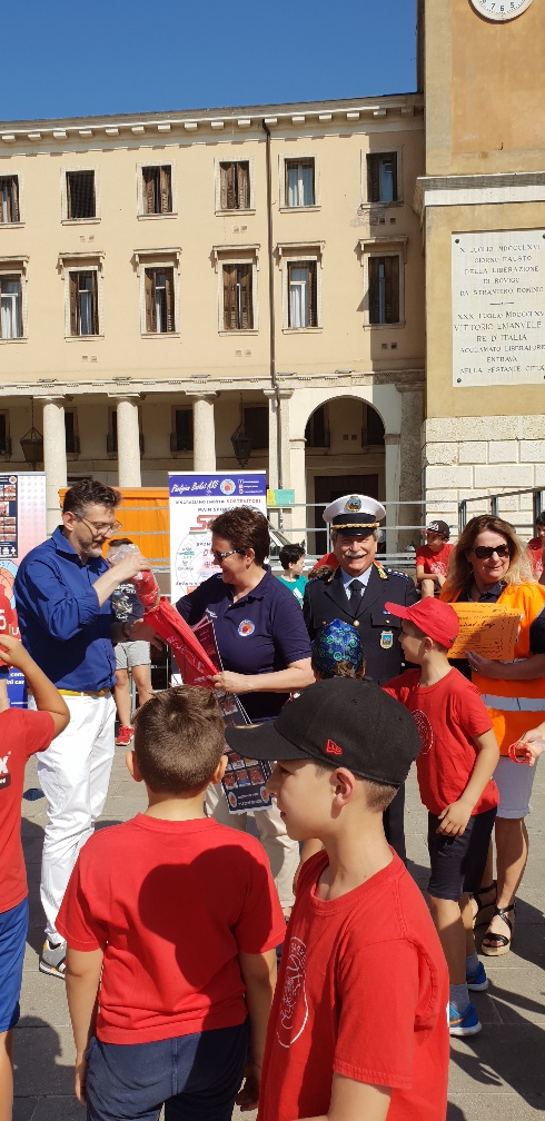 La Rhodigium Basket Asd e l’associazione Pedibus, in ricordo della giornata, hanno donato agli amministratori e al comandante della Polizia Locale Giovanni Tesoro, la maglietta della società e altri piccoli gadgets.
