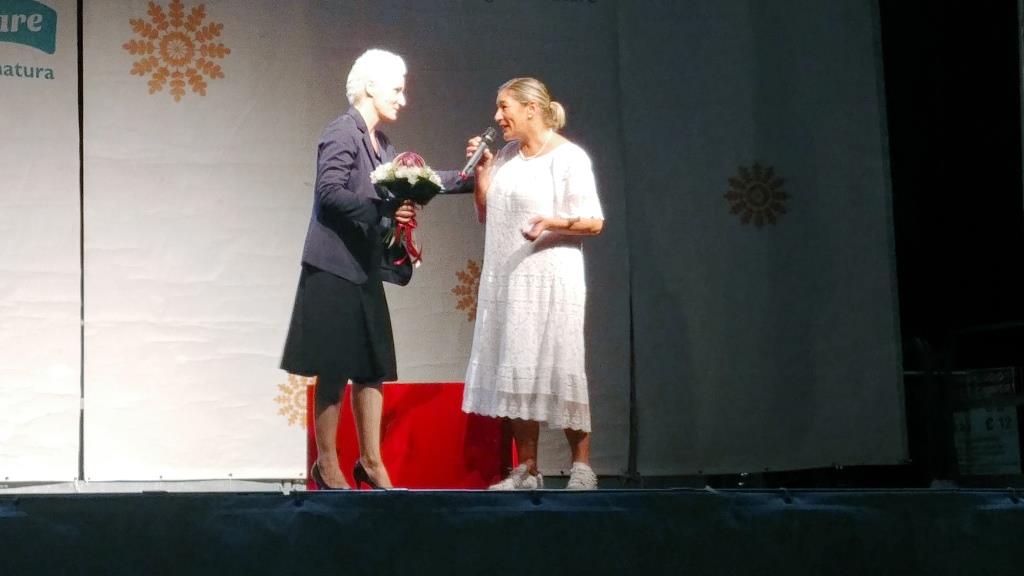 L’assessore alla Cultura e comunicazione del comune più turistico del Polesine, Anna Frasson, ha omaggiato l’attrice di un bouquet di fiori a ricordo della serata.