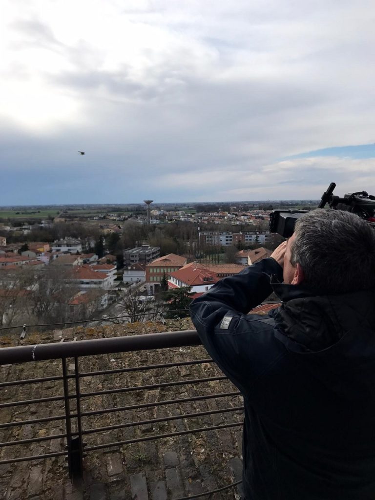 Ieri i conduttori del programma, Marcello Masi e Daniela Ferolla, insieme ai tecnici, sono stati a Torre Donà, dove accompagnati dall’architetto Marco Bressanin, sono saliti ed hanno liberato un gheppio e una civetta, che il WWF di Rovigo aveva curato.