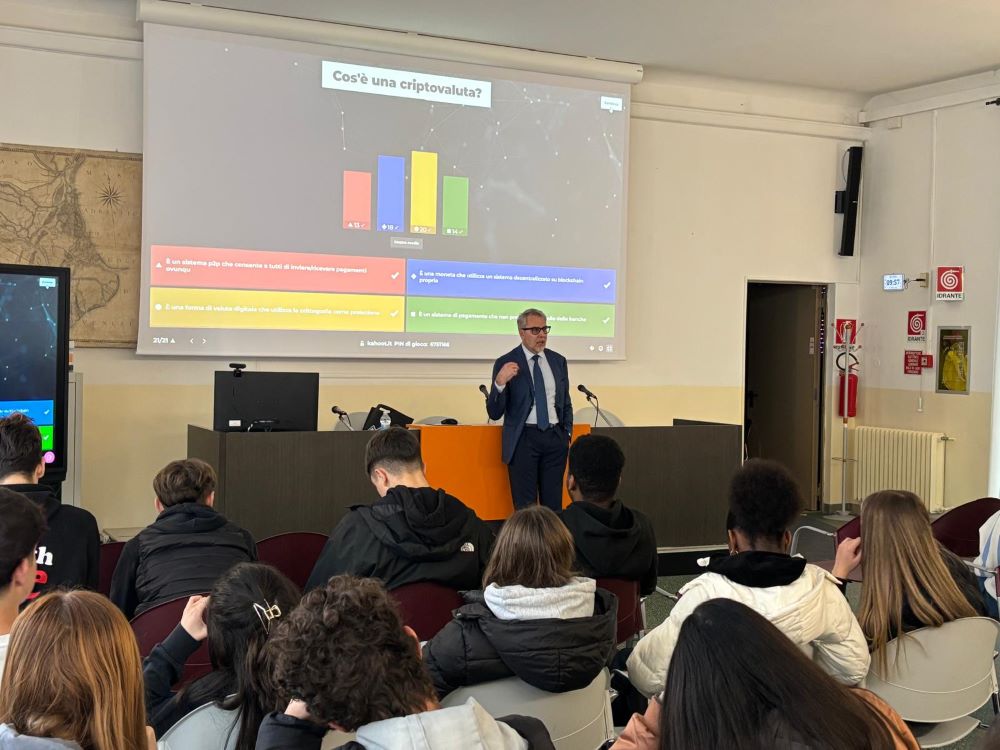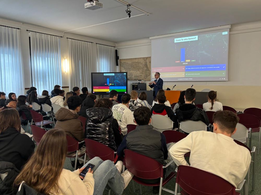 A completamento del percorso, a distanza di alcuni giorni, gli studenti hanno partecipato a un incontro tenuto nell’aula magna dell’istituto da Andrea Dissette, responsabile dell’Ufficio Relazioni Istituzionali e Sviluppo di BVR Banca Veneto Centrale. Durante l’incontro sono stati approfonditi concetti chiave legati al sistema bancario, al funzionamento dei prestiti e ai moderni sistemi di pagamento, con un linguaggio semplice ma puntuale, capace di rendere accessibili anche gli argomenti più complessi.
