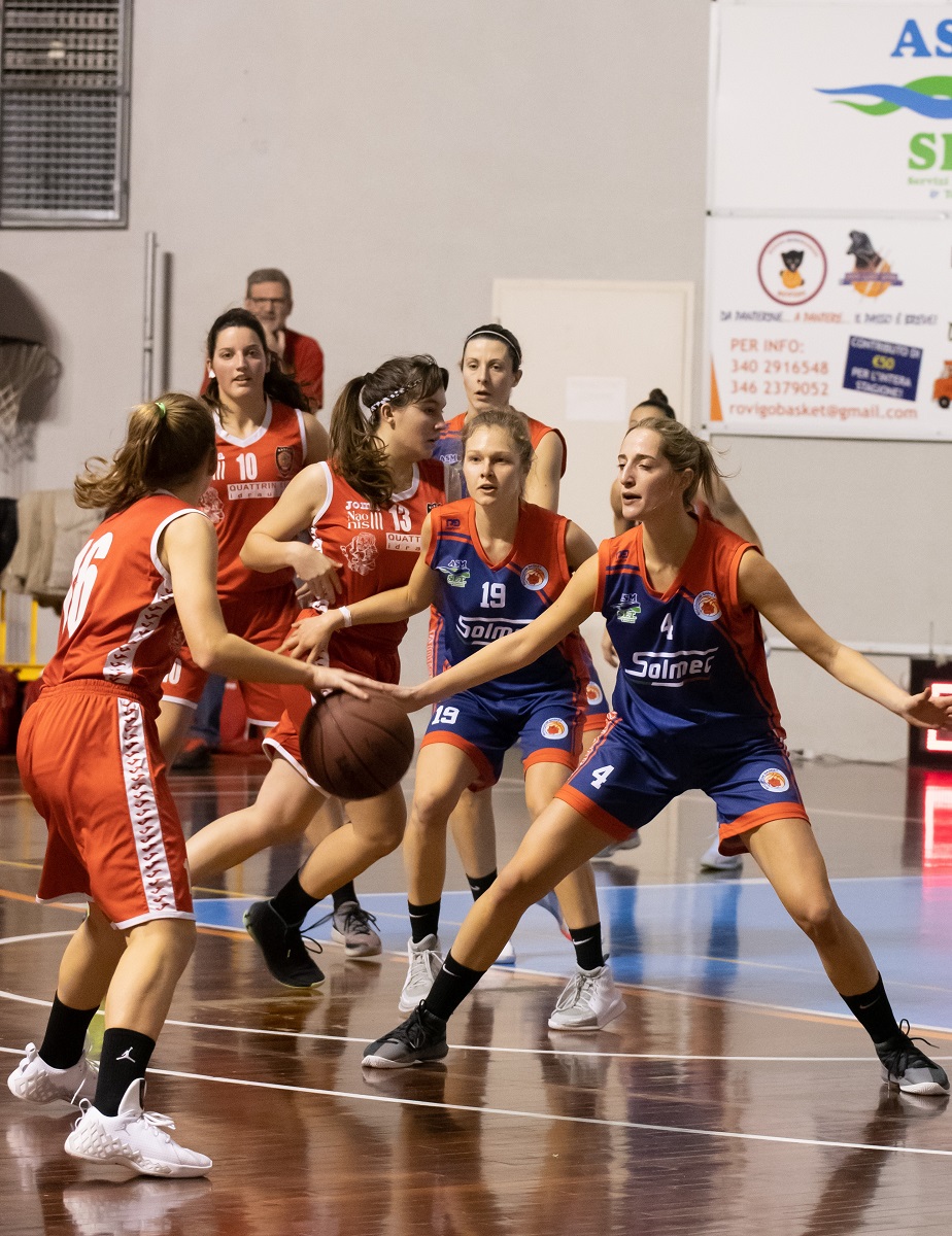 Marano Vicentino (VI) – Inaugura il 2020 con una vittoria la Solmec Rhodigium Basket che espugna Marano Vicentino con il punteggio di 55-66 nel match infrasettimanale che apre il girone di ritorno del campionato di serie B. Resistono metà partita le padrone di casa, costrette a cedere alle rossoblù che vincono meritatamente una partita molto fisica e combattuta da entrambe le parti. Nonostante i problemi fisici accorsi in settimana, le rossoblù sono autrici di una buona prestazione corale che ha messo in risalto le sue lunghe, Furlani e Ferri su tutte, ed una straordinaria Pegoraro, al rientro dopo l’influenza, che chiude il match con 9 punti e 12 assist.