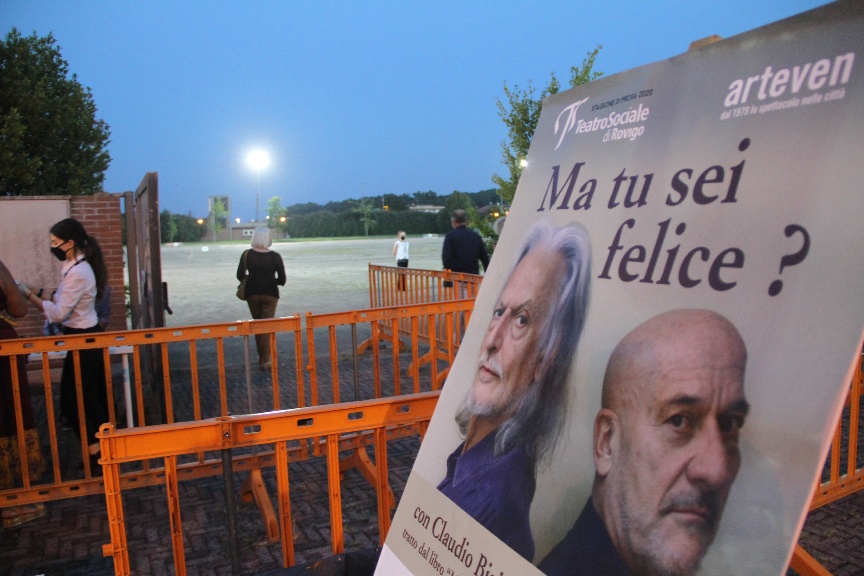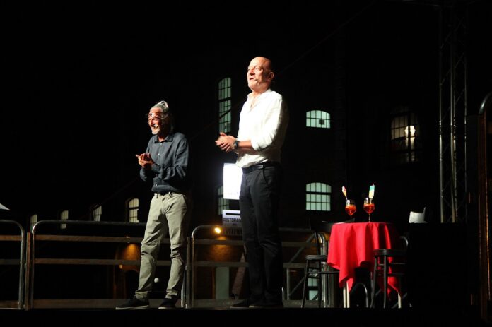 ROVIGO – La coppia Bisio-Alberti ha fatto il tutto esaurito allo spazio eventi del Censer di Rovigo. La stagione di Prosa del Teatro Sociale, adattata per l’emergenza sanitaria, si è chiusa alla grande e con grande divertimento. I due famosi attori hanno portato in scena “Ma tu sei felice” (recupero de “I fratelli Karamazov), uno spettacolo esilarante, connubio tra dialogo teatrale e cabaret, dove filo conduttore sono stati la maestria, la professionalità, l’ironia e la complicità dei due protagonisti, che non hanno mancato di coinvolgere pubblico e amministratori in simpaticissime gag.