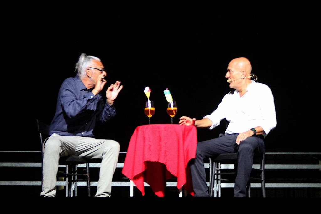 Circa due ore di spettacolo, dove i due attori, interpretando Saverio e Vincenzo hanno descritto storie, personaggi e varie sfaccettature umane, entrando e uscendo dai loro ruoli, sempre con grande simpatia e coinvolgimento. I circa 600 spettatori, che hanno occupato praticamente tutti i posti disponibili, hanno premiato la famosa coppia con tantissimi applausi.