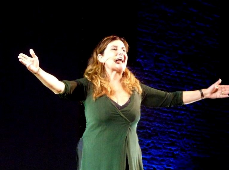 Esilarante la parodia «donna italica contro donna dell’est, ceppo slavo. E quando cala la… slavina… son dolori!». Il tempo che passa, il corpo che si sforma, non è improntato alle pari opportunità, perché l’uomo con gli anni diventa interessante, mentre la donna diventa “interessanda, gerundio”. Il Reggiani-pensiero sulla condizione femminile non poteva apparire più lucido e trasparente, ma l’attrice riesce a veicolarlo attraverso questo fuoco di fila di battute e assiomi che lì per lì, nel divertimento dell’assurdo, ti nascondono le riflessioni più profonde ed amare. Una grande prova di attrice, che da sola e senza gobbo, tiene il palco per quasi due ore e la gente incollata a quei suoi occhi chiari ipnotici, che mettono soggezione.