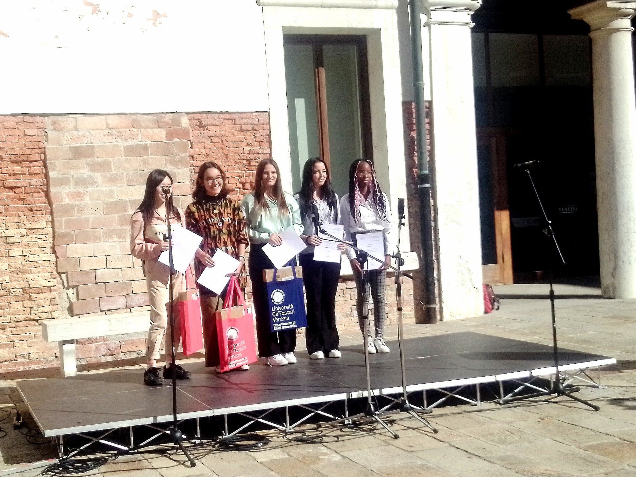 Si sono alternati gli interventi istituzionali, sezioni musicali con il Coro Piccoli Cantori Veneziani diretto da Diana D’Alessio, e la premiazione del concorso. C’è stata anche una maratona di letture migranti dal titolo “L’altro sono io”: studentesse e studenti hanno proposto brani letterari di 18 lingue diverse legati all’alterità (cinese, ebraico, argentino, francese, armeno, angloamericano, serbo croato, albanese, giapponese, spagnolo, vietnamita, uruguaiano, hindi, portoghese, persiano, turco, italiano, arabo).