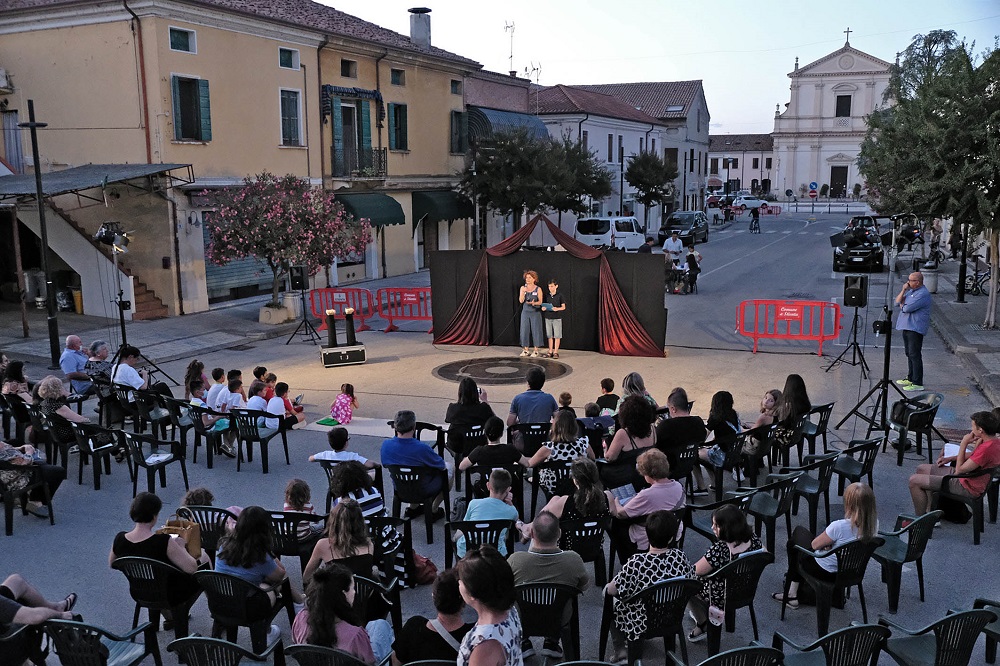 Appropriato l’allestimento del varietà a semicerchio con lo scalone arginale a fare da arena. Lo spettacolo si è svolto davvero in uno spazio circense all’aperto, senza palco, e con l’interazione del pubblico, soprattutto nei numeri di magia partecipativa. Per il comune di Stienta, che è entrato ex novo nella rete dei partner de “Il teatro siete voi” è stato un bel battesimo artistico. L’assessore alla Cultura Marco Franchi, anche in rappresentanza del sindaco e presidente provinciale Enrico Ferrarese, assente per indisposizione, ha ringraziato il contributo organizzativo di Pro loco e Avis e si è impegnato a far partecipare il comune rivierasco alle prossime stagioni teatrali. Il pubblico è accorso numeroso: tanti adulti, ma soprattutto una quantità di bambini e parecchi giovani e adolescenti, che è il risultato più importante per un progetto teatrale nato per diffondere la cultura del teatro tra le nuove generazioni.