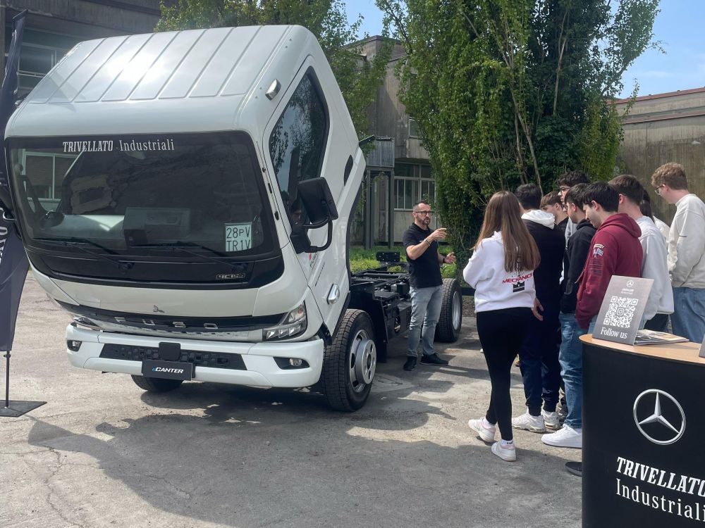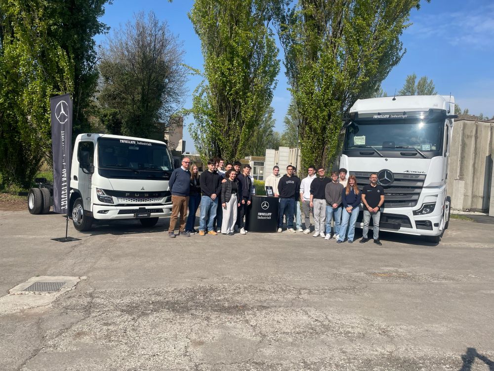 Incontenibile è stato l’entusiasmo degli studenti quando hanno potuto toccare con mano l’evoluzione della tecnologia a contatto con due truck di ultimissima generazione, uno endotermico ed uno full electric, di “Trivellato veicoli industriali srl”, partner di Daimler Truck Italia- Mercedes.