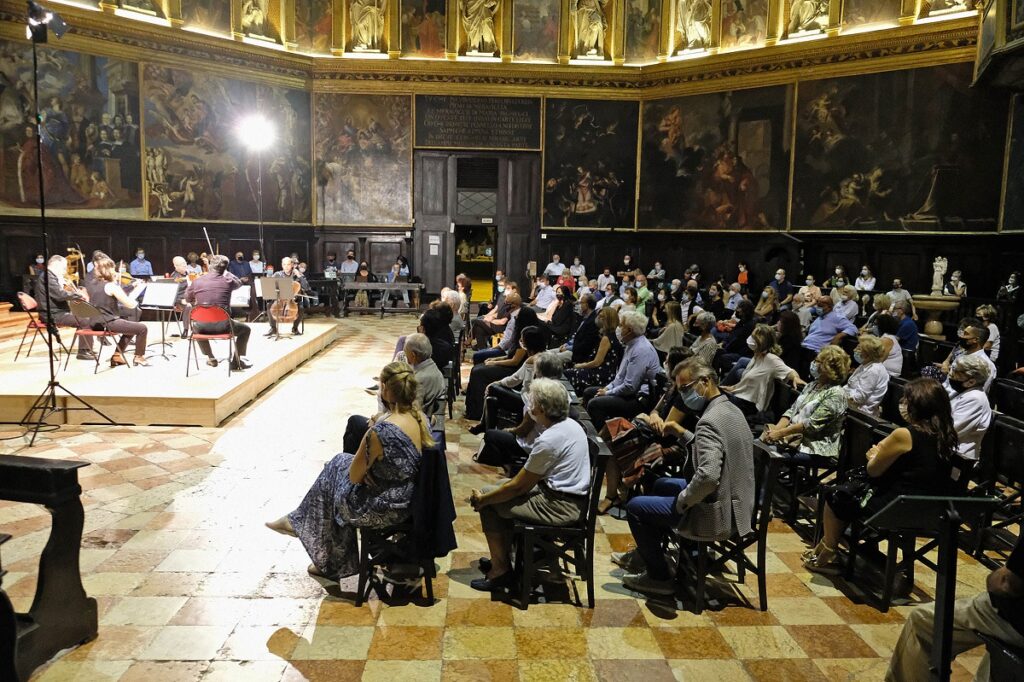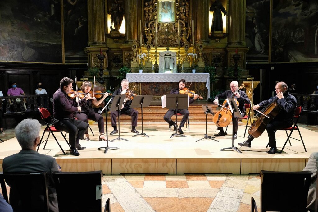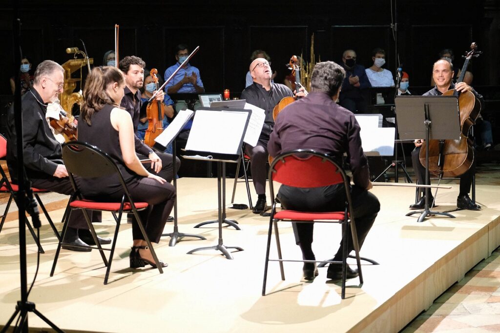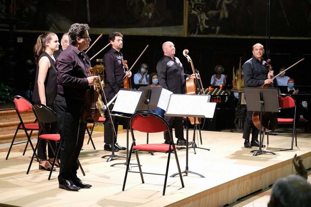 Il concerto è stato aperto dall’esecuzione del Capriccio op. 85 di Richard Strauss, l’ultima opera scritta dal compositore, inizialmente intitolata “Conversazione per musica”. Un vero e proprio dialogo è quello che si è instaurato fra i sei strumenti ad arco, grazie al suono impeccabile e alla maestria di Klaidi Sahatçi, affiancato dalla giovane e tenace Elisa Spremulli, che ha dimostrato ancora una volta il suo grande valore musicale, unito ai raffinati contributi dei violisti Vladimir Mendelssohn e Daniel Formentelli, in dialogo intenso con i violoncelli di Enrico Dindo e di Luigi Puxeddu, con la loro superba ma sempre elegante forza.