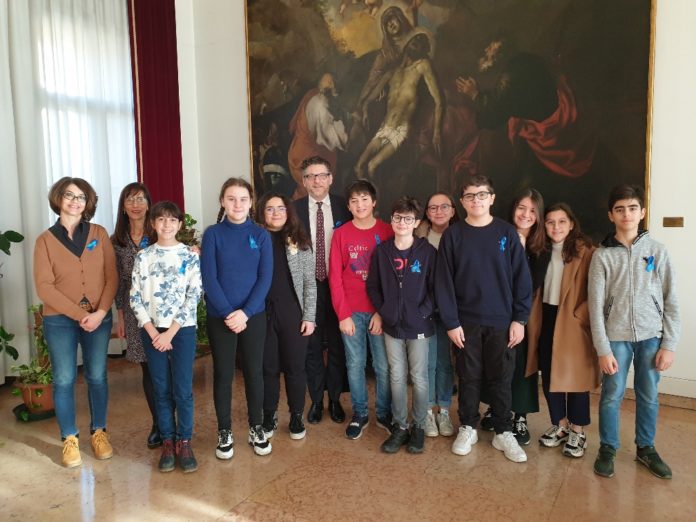 ROVIGO – In occasione della Giornata nazionale contro il bullismo, celebrata venerdì 7 febbraio, una delegazione dell’Istituto comprensivo Rovigo Due, in particolare di studenti della Scuola Media Parenzo e Scuola Media del Conservatorio Venezze, guidati dalla dirigente Maria Vigna e dall’insegnante Mara Malin, hanno consegnato al sindaco Edoardo Gaffeo, il Nodo Blu simbolo della Giornata. Esso, oltre a unire tutte le scuole d’Italia che si schierano per combattere questi episodi, ha un significato figurato: nei modi di dire, i nodi, servono per non dimenticare.