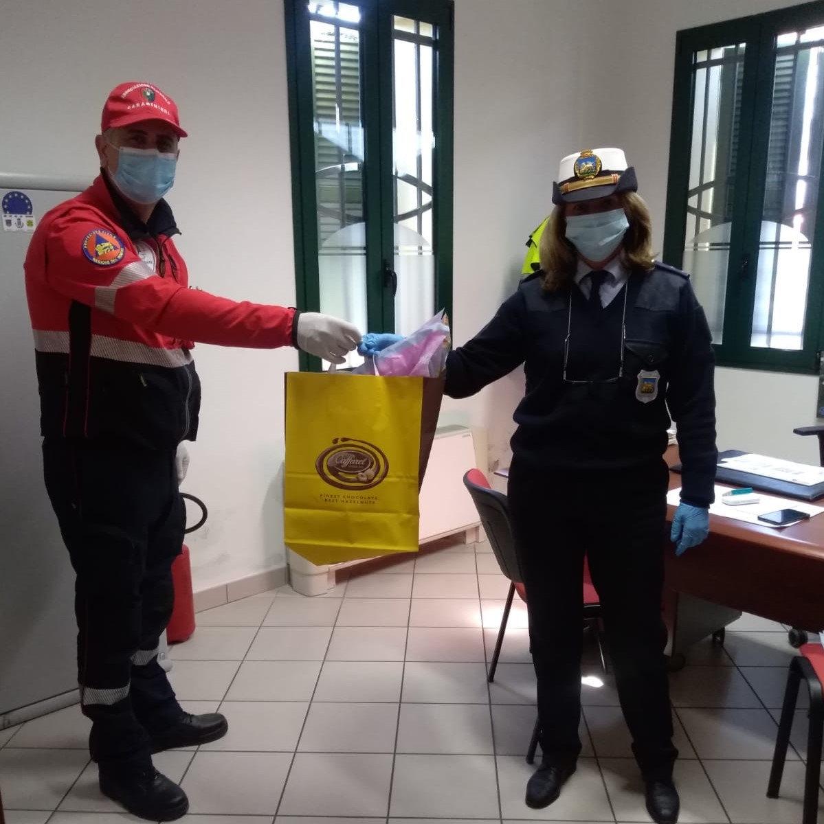 Gli agenti della Polizia locale hanno ricevuto omaggi pasquali (colombe e uova), donati dalla Caffarel Italia a tutte le forze di polizia. A consegnare i dolci al corpo intercomunale, i volontari dell’associazione nazionale Carabinieri.
