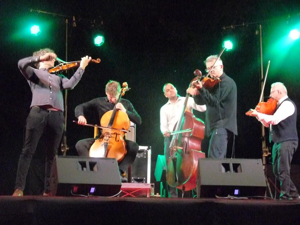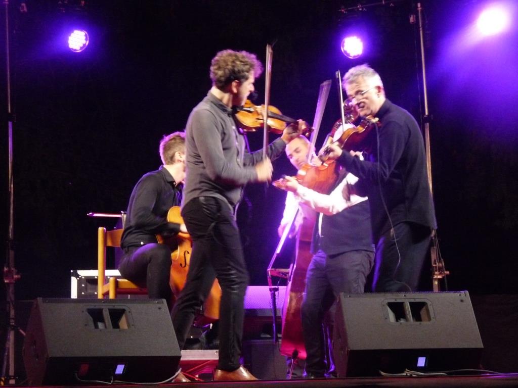 I cinque musicisti suonano a livelli eccelsi. Ognuno è un primo strumento in apparente competizione con gli altri. Si incalzano l’un l’altro, rallentano, diventano uno solo, poi si sovrappongono, prima uno, poi l’altro, poi tutti; gli strumenti appaiono stregati e costringono gli archetti a vibrare per la velocità. Travolgono tutto di ritmo e di colore. Alla fine della performance il pubblico è come inebetito e applaude ininterrottamente.