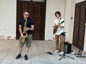 La musica di Tommaso Bencini al sassofono e Francesco Olivato alla chitarra, entrambi studenti del Conservatorio “Francesco Venezze” di Rovigo, ha intrattenuto la platea prima dell’inizio dello spettacolo.