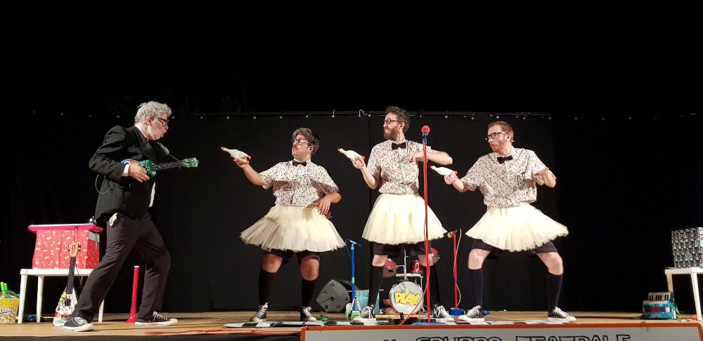 La serata è proseguita con un’esplosione di energia e originalità grazie agli Jashgawronsky Brothers, protagonisti dello spettacolo “Toyboys”. Il gruppo comico-musicale, noto in tutto il mondo per la sua capacità di trasformare materiali di recupero in strumenti musicali surreali, ha stupito il pubblico rodigino con la nuova sfida: fare musica utilizzando giocattoli reinventati.