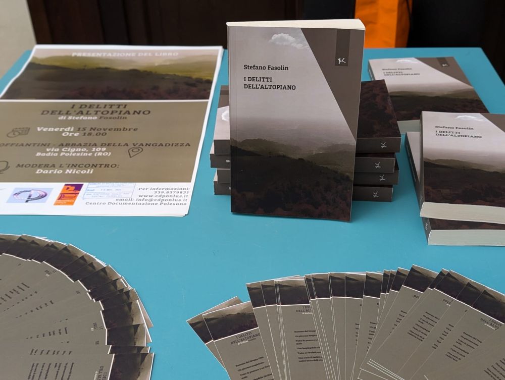 Badia Polesine (RO) – La partecipazione calorosa della cittadinanza ha decretato il successo della presentazione de “I delitti dell’Altopiano”, romanzo d’esordio di Stefano Fasolin, noto avvocato badiese, avvenuta venerdì 15 novembre, all’Abbazia della Vangadizza. In un’atmosfera informale e quasi familiare, con la Sala Soffiantini straripante di persone, alcune che avevano già letto il libro e ne hanno riportato le impressioni, hanno condotto la conversazione con l’autore, Miriam Rossi dell’Associazione Comete e il giornalista Dario Nicoli.