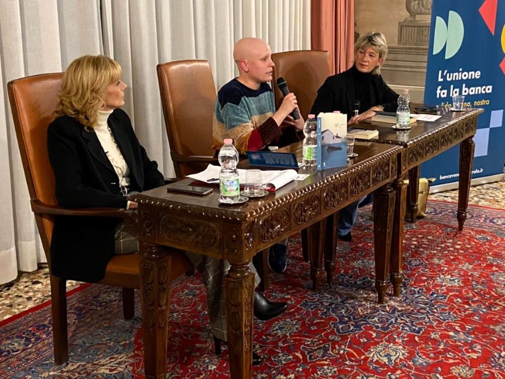 Dopo il saluto di Laura Drago, consigliera di amministrazione dell’istituto di credito cooperativo, che ha ricordato l’impegno della banca per la parità di genere, anche l’assessore Giorgia Businaro, originaria come la scrittrice del piccolo comune di Frassinelle Polesine, nel suo intervento istituzionale si è soffermata sulla particolare valenza di Magnificat. «Questo ciclo di incontri – ha commentato l’assessore Businaro – ci permette di richiamare l’attenzione sulle pari opportunità, che non sono questioni legate unicamente al genere, ma riguardano anche le tante difficoltà da superare, per chi nasce in un paese decentrato come nel caso di Sonia, per coltivare e far emergere i propri talenti».