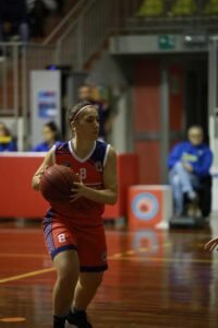 Il coach rossoblù presenta all’avvio il solito quintetto che rompe subito il ghiaccio. 7-0 in tre minuti con Battilotti e il play Viviani a menare le danze. L’evergreen Zanuso realizza il primo canestro per le sue dopo tre minuti e mezzo di gioco ma la Solmec continua a macinare gioco. Tutte le giocatrici in campo fanno il suo e il vantaggio sale in doppia cifra (16-6). Il play locale Nicole Longhi, diciassettenne di belle speranze, realizza un gioco da tre punti per il -7 ma nel finale di quarto Viviani trova con un jumper il canestro del +9 con cui si chiude il parziale di apertura. Il secondo quarto è quanto di meglio si possa vedere su un campo da basket: difesa assatanata, dominio a rimbalzo, contropiedi in serie e percentuali da favola nel tiro dalla lunga distanza. Ne consegue un parziale di 25 a 5 con Chiara Turri in cattedra. Entra anche la capitana Ballarin che a poco a poco sta entrando nei ritmi gara e si fa apprezzare per un paio di chicche offensive. Si fa vedere anche Bonivento che nel pitturato trova un paio di canestri. Unico neo l’infortunio di Battilotti che dopo 80 secondi giocati nel parziale deve uscire per una botta subita al piede. Peccato perché Michela stava viaggiando alla grandissima. Si va al riposo sul +31 e partita ormai in ghiaccio.